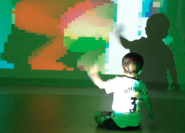 The Body of Light show is a 30 minute performance with one dancer and a projection screen. We use a Microsoft Kinect sensor to read the movements of the dancer and then use that data to generate and control graphics which are projected onto the dancer and the screen. The connection between the computer and Kinect is made through some open source software called Synapse and the magical imagery is generated with Apple’s free software Quartz Composer. From day-one our aim was to create a beautiful piece of professional contemporary dance that was integrated with high-end technology — and for it to be compact (tourable) and low cost. A very popular part of the show is the Stay and Play where audience members — young and old — can experience interacting with the technology themselves. This has proved very beneficial in settings such as Alder Hey Children’s Hospital (Liverpool) where even children with limited mobility could participate.